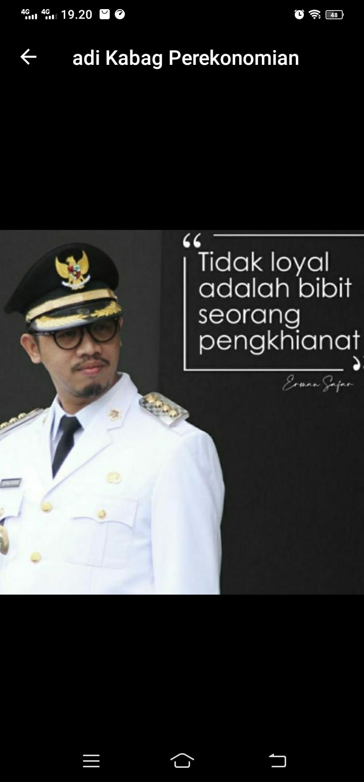 Dalam foto itu, Erman Safar memakai baju dinas dan captionnya, “Tidak Loyal adalah bibit seorang pengkhianat”.