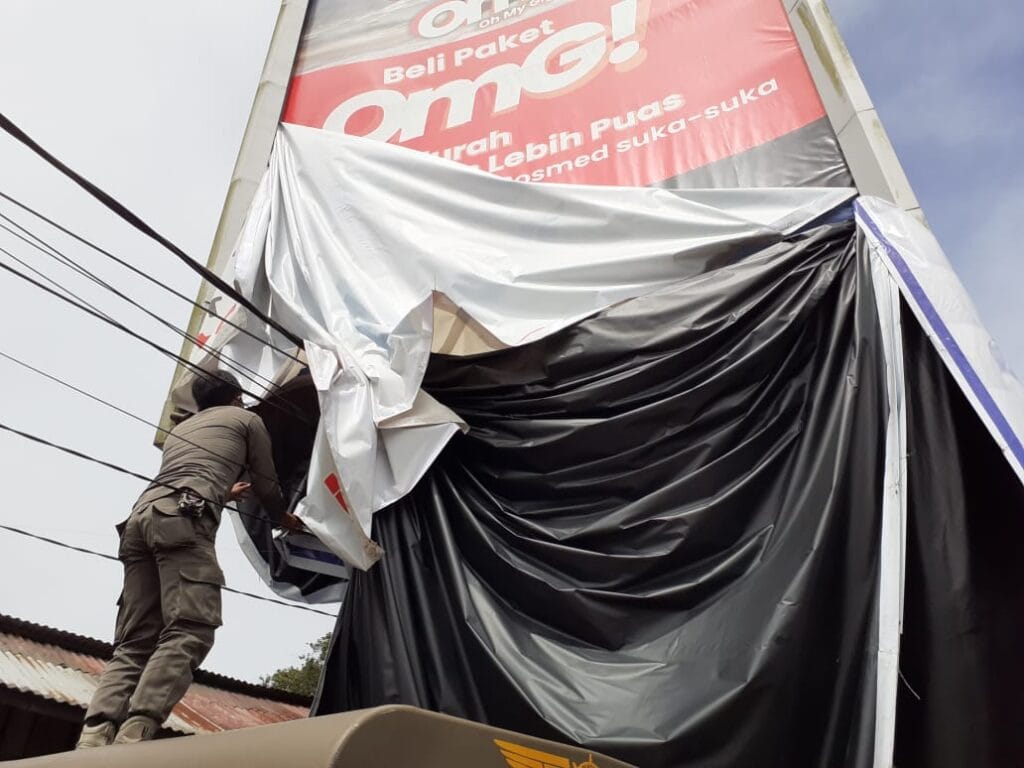 Tim menertibkan seluruh APK berupa baliho, spanduk, billboard dan umbul-umbul.