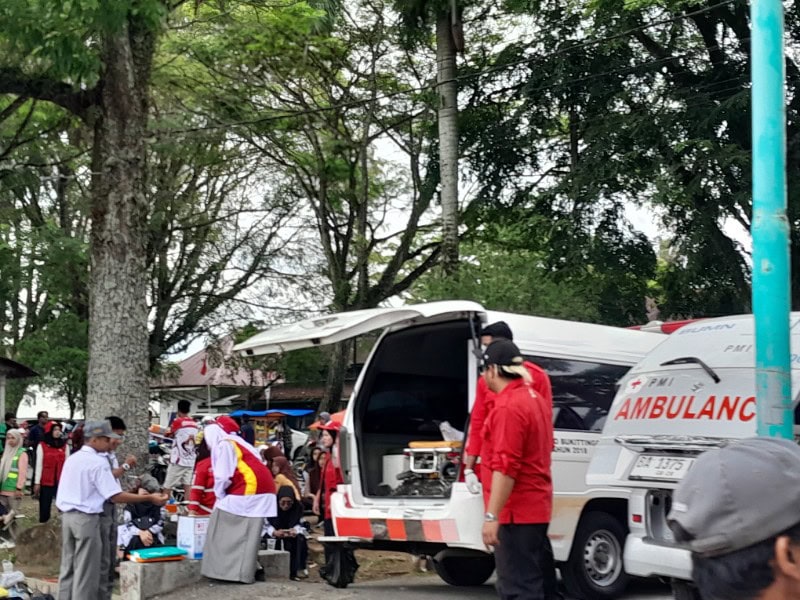 Peserta ini kemudian dirawat di pinggir lapangan oleh PMI Bukittinggi dan tak sanggup mengikuti upacara.