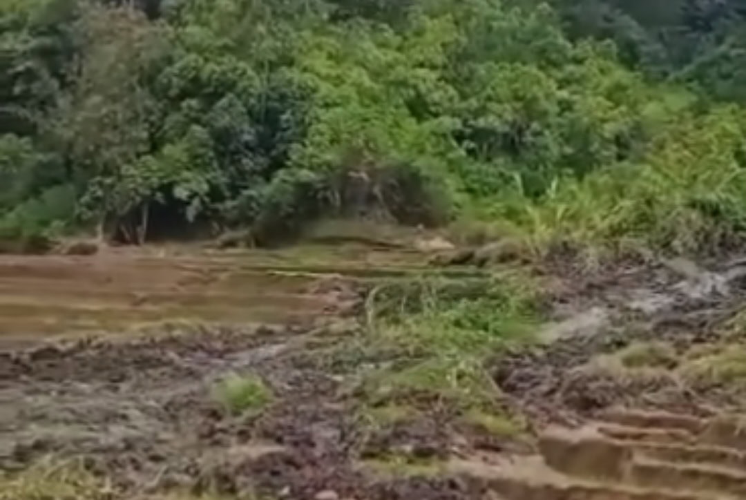 Video ini viral dalam dua hari terakhir. Dalam tayangan video yang diunggah instagram @mata_rakyatsumbar, terlihat material longsor bergerak turun menyusur sawah.