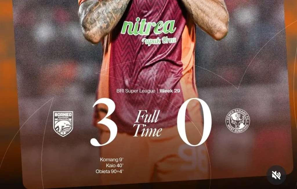 KATASUMBAR – Borneo FC terlalu tangguh bagi Semen Padang (SP) FC. Pesut Etam menang telak 3-0.