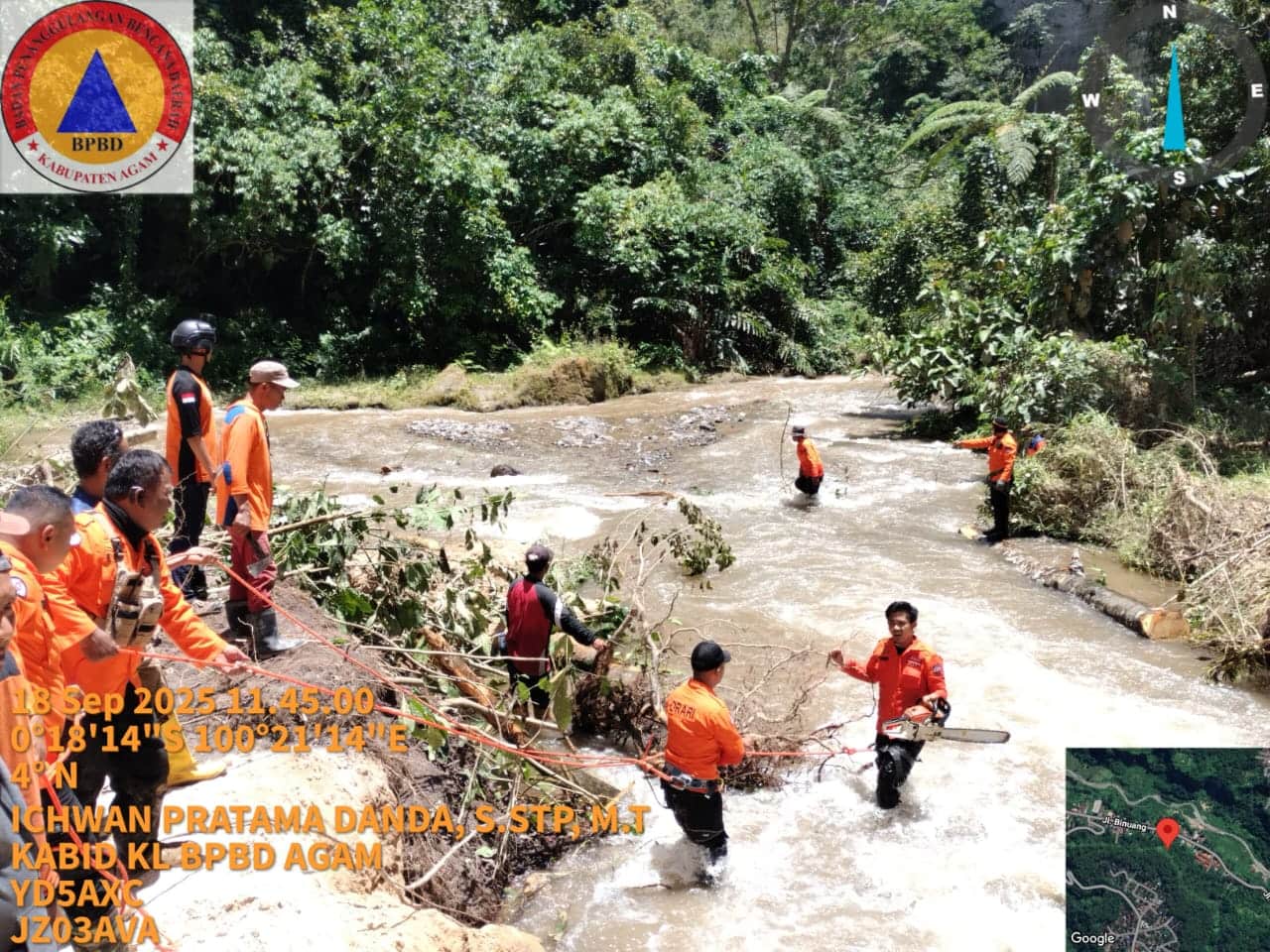 Kabid KL BPBD Agam Ichwan Pratama Danda mengatakan, tim telah melakukan pembersihan material longsor pada Kamis 18 September 2025.