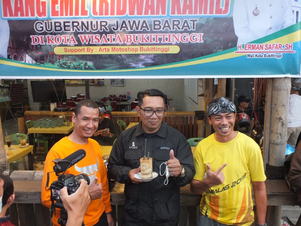 Ridwan Kamil berkesempatan mencicipi minuman khas Bukittinggi Teh Talua Tapai yang disuguhi Komunitas Bikers.