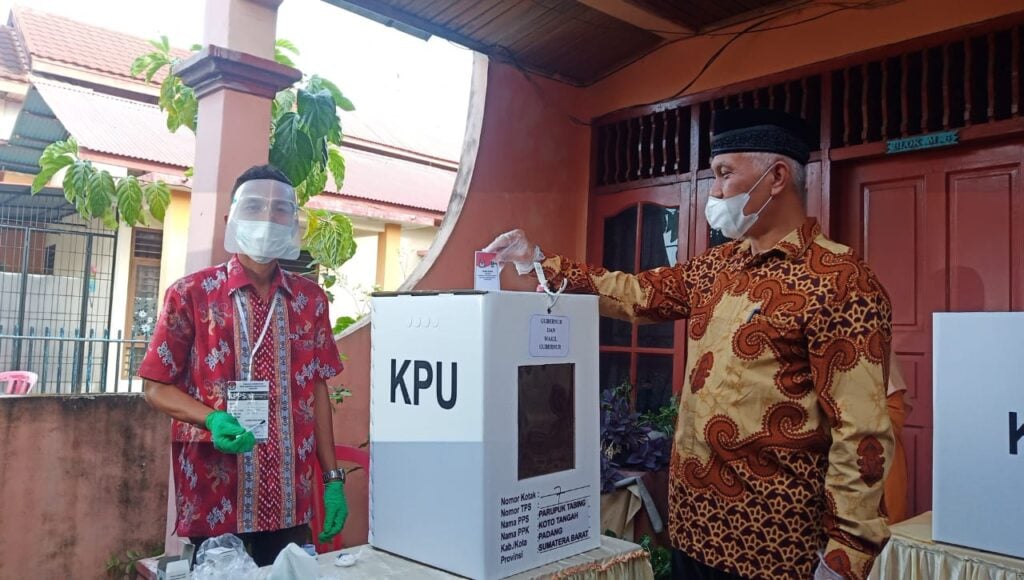 Diketahui, Mahyeldi mencoblos di TPS 007, Wisma Indah III, Kelurahan Parupuk Tabing, Kecamatan Koto Tangah, Kota Padang.