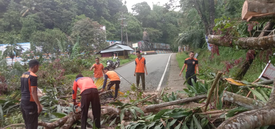 Tim BPBD Pessel, harus menggunakan alat senso untuk membersihkan pohon tumbang.