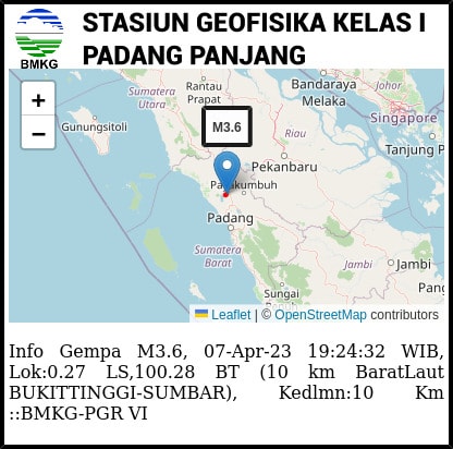 Dari data Badan Meteorologi Klimatologi dan Geofisika (BMKG) gempa darat di Bukittinggi berkekuatan M=3.6