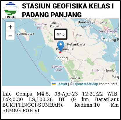 KATASUMBAR – Gempa di Bukittinggi kembali terjadi sekitar pukul 12.21 WIB, Sabtu 8 April 2023.
