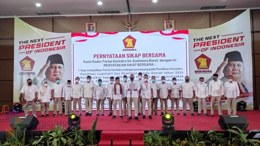 Dalam penyampaian sikap tersebut, Andre dan seluruh ketua DPC Gerindra Sumbar berkomitmen untuk memenangkan Prabowo.
