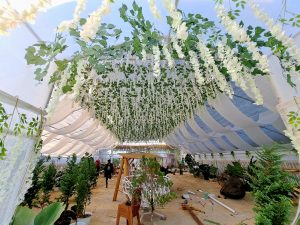 Titik pameran kedua berada di Greehouse Wedding. Tempat ini agak istimewa, karena barang antik dipadukan dengan seni penataan bunga cantik.