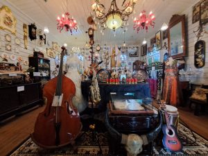 Mulai dari piring-piring dan teko kuno, alat musik kuno, senjata tradisional kuno, perlengkapan kantor kuno dan masih banyak lagi barang kuno lainnya di sini.