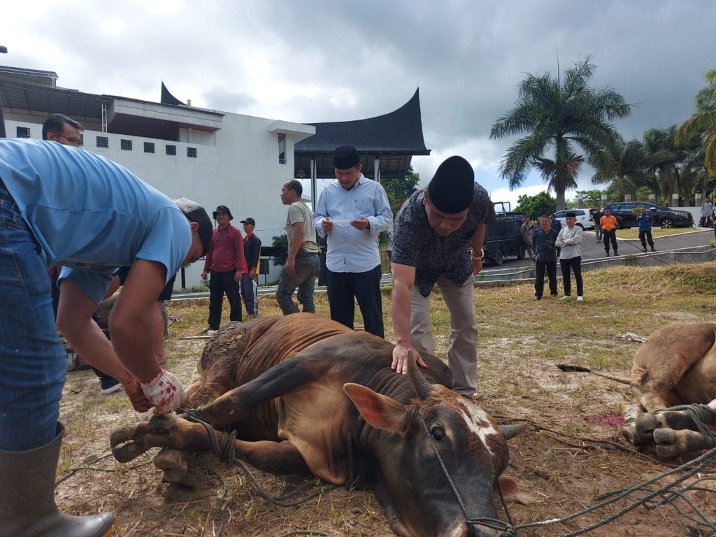 Proses penyembelihan hewan kurban KORPRI Kota Bukittinggi dibuka oleh Sekretaris Daerah Kota Bukittinggi Martias Wanto, selaku Ketua KORPRI Kota Bukittinggi periode 2022 – 2027.