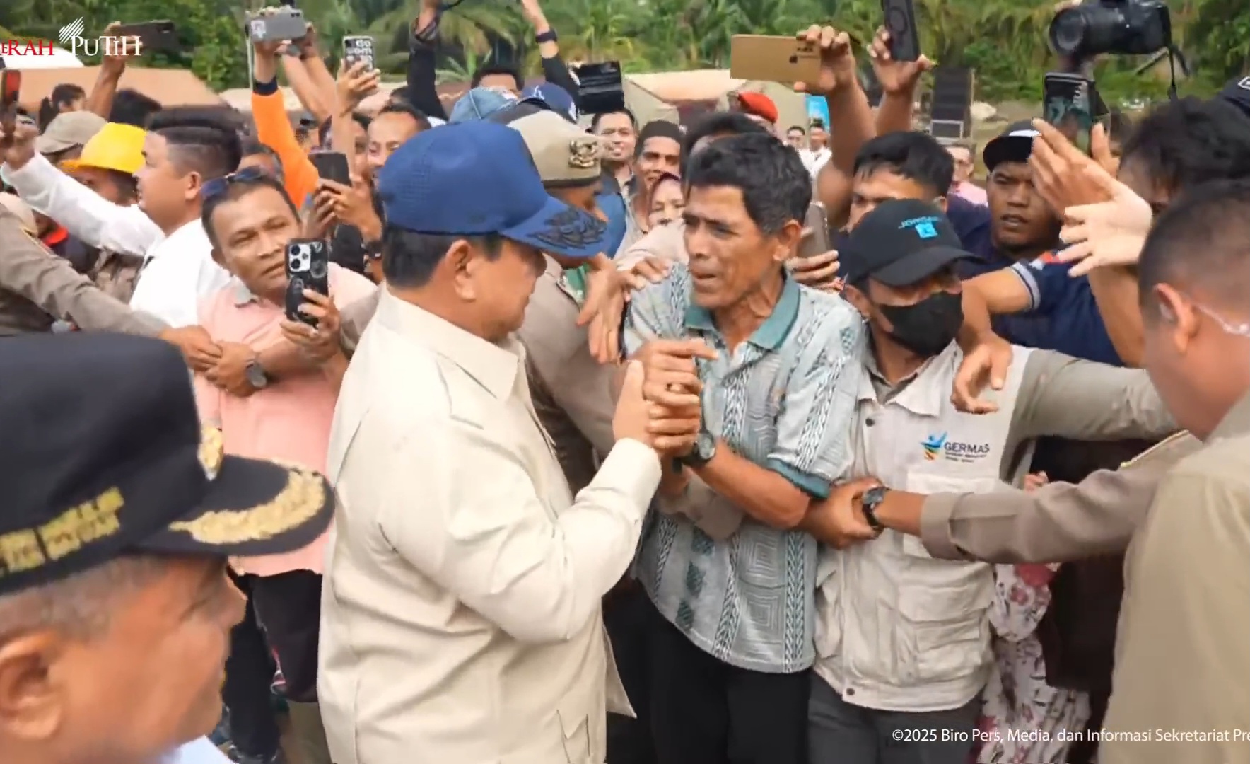 Kedatangan Prabowo disambut antusias warga setempat yang merupakan korban terdampak bencana pada Kamis 25 November 2025 lalu.