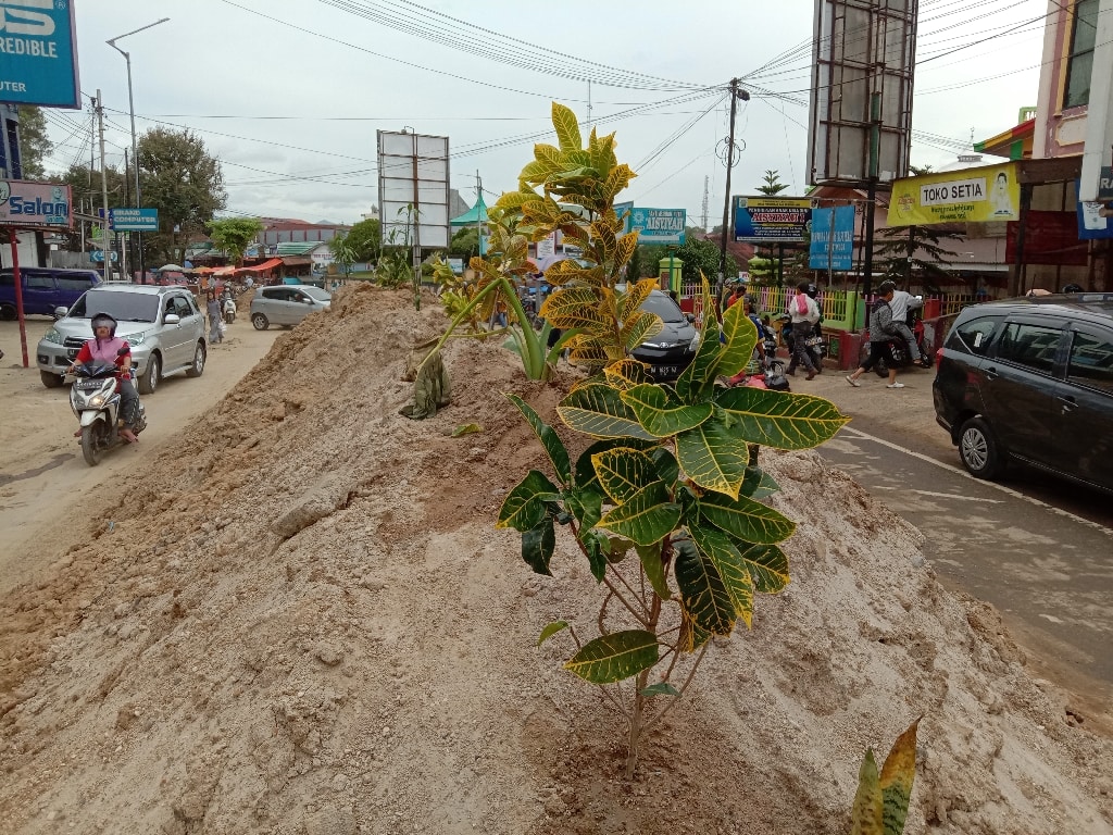 Pantauan KATASUMBAR, bunga tersebut ditanam di puncak timbunan tanah, sehingga tampak mencolok.