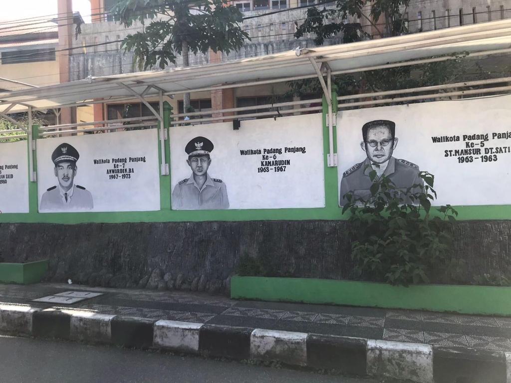 KATASUMBAR – Mural Wali Kota Padang Panjang dari masa ke masa hadir di Kampung Kreatif Kelurahan Balai-Balai, Kecamatan Padang Panjang Barat (PPB), Kota Padang Panjang.
