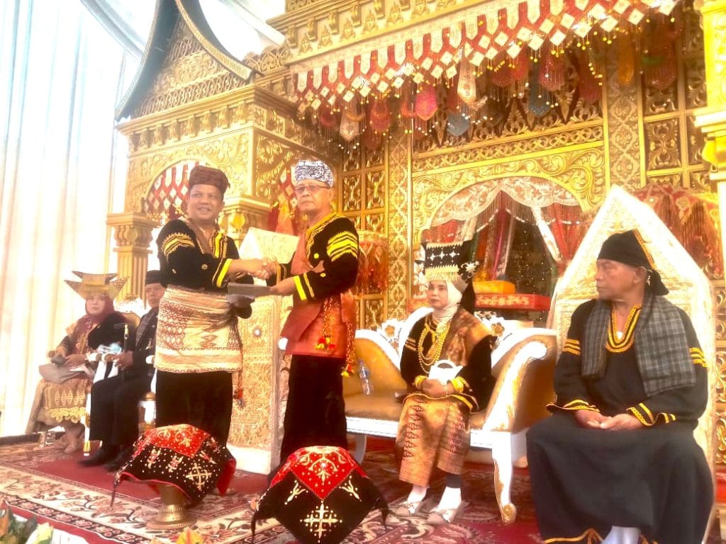 PESSEL- Kaum Caniago di bawah payung panji Datuk Mangkudun Sati Nagari Aur Begalung Talaok, Kecamatan Bayang, Kabupaten Pesisir Selatan (Pessel), Sumbar baralek gadang dengan malewakan pangulu, Minggu 6 April 2025.