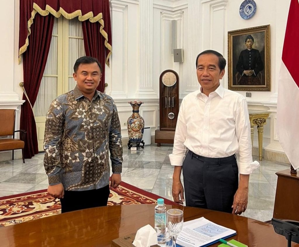 KATASUMBAR – Bupati Dharmasraya Sutan Riska mengunggah momen bertemu dengan orang nomor satu di Indonesia, Presiden Jokowi.