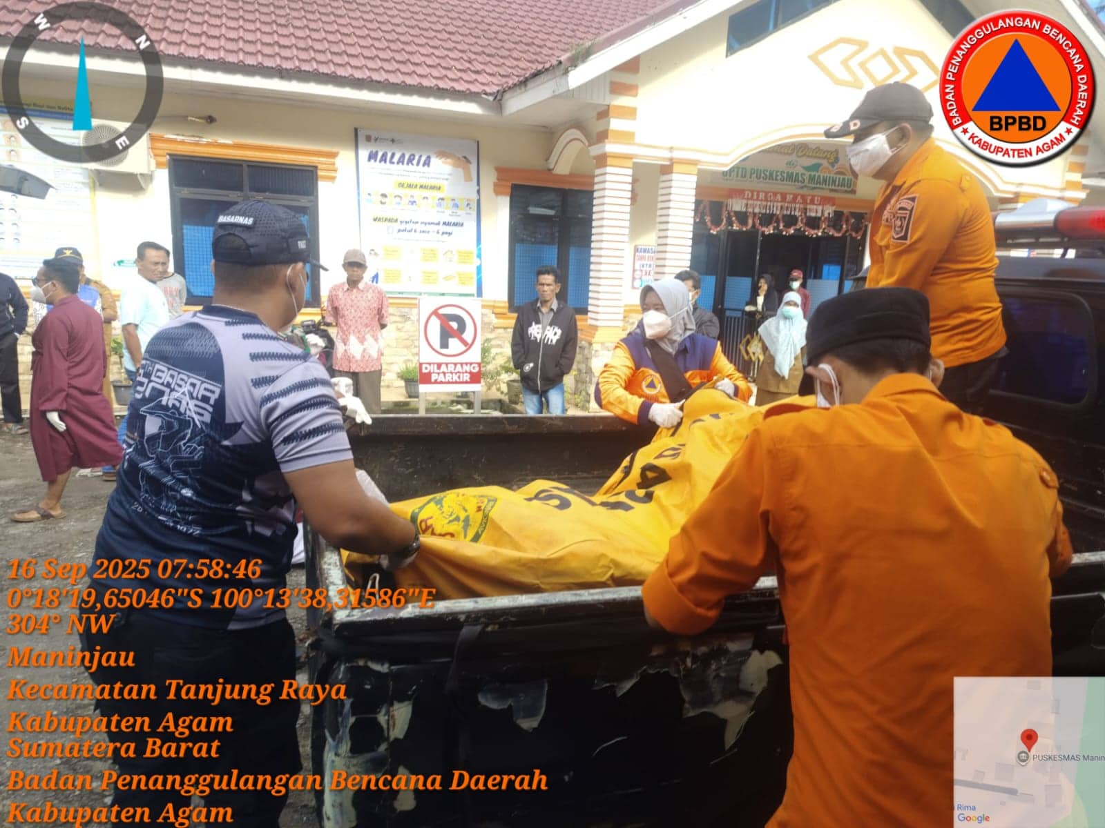 Selanjutnya korban dievakuasi tim gabungan ke Puskesmas Maninjau dan jasadnya diserahkan ke keluarga.
