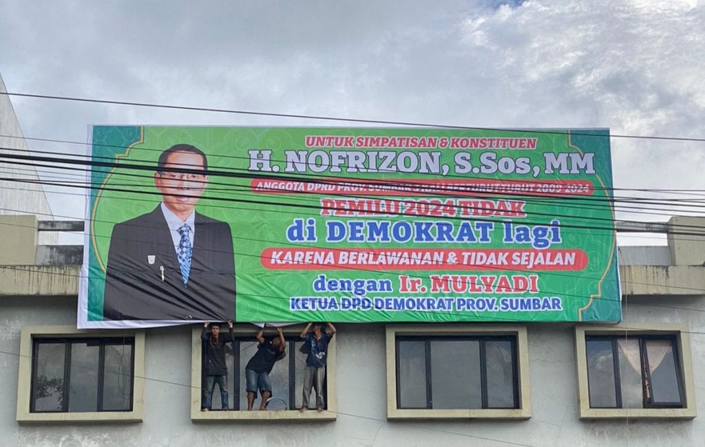 Nofrizon mengungkapkan, baliho besar tersebut sengaja ia pasang karena ia sudah tiga periode menjadi anggota DPRD Sumbar bersama Partai Demokrat.