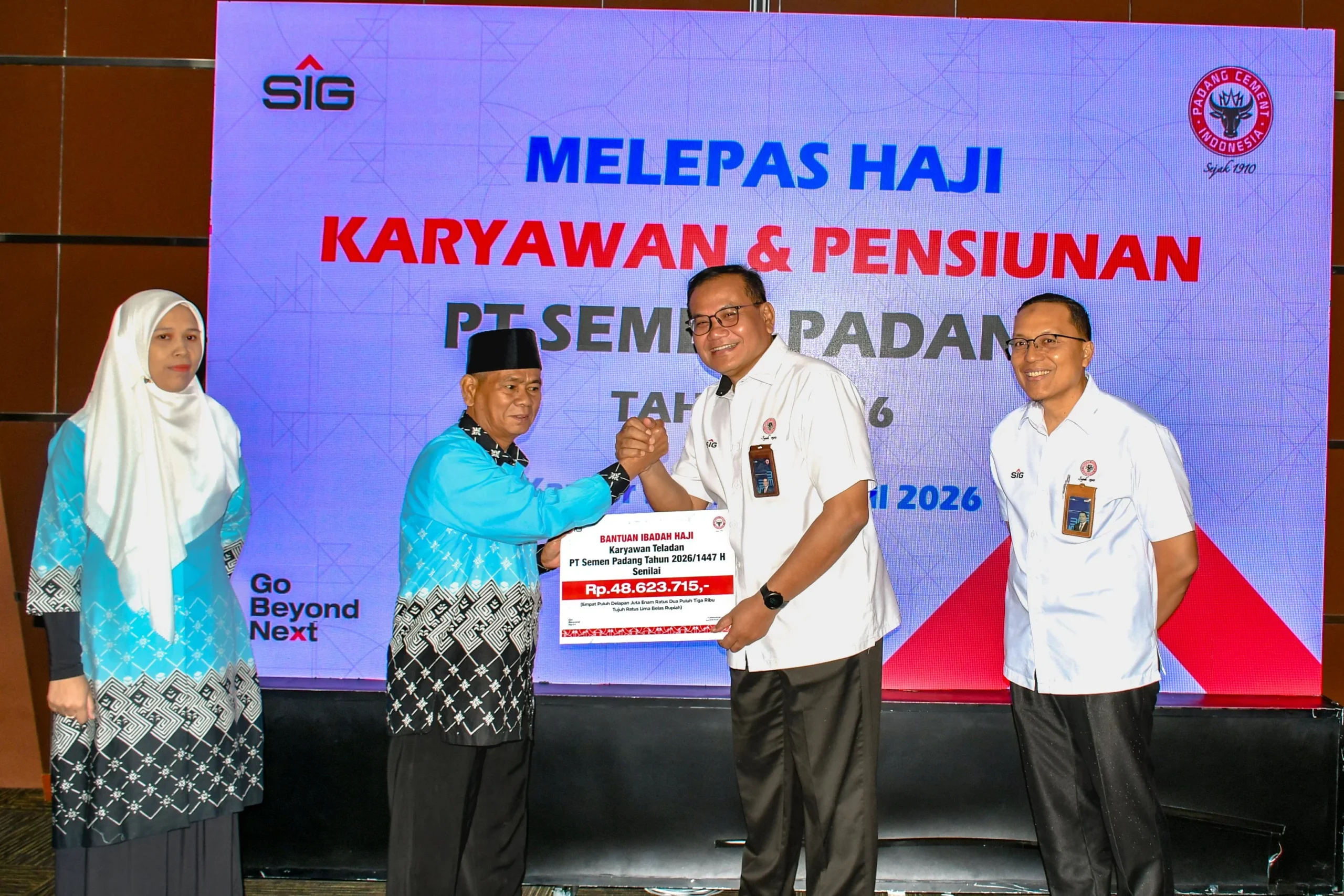 “Atas nama manajemen PT Semen Padang, kami mengucapkan selamat menunaikan ibadah haji. Semoga seluruh rangkaian ibadah berjalan lancar dan kembali ke Tanah Air sebagai haji yang mabrur. Kami juga memohon doa agar perusahaan terus berkembang, semakin kuat, dan memberikan manfaat yang lebih luas,” tambahnya.