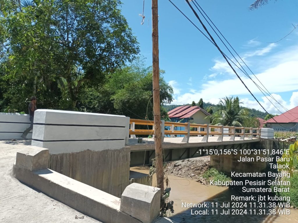 KATASUMBAR– Masyarakat Kampung Talaok, Kecamatan Bayang, Kabupaten Pesisir Selatan (Pessel), Sumbar kembali bisa menikmati sarana jembatan di kampung itu.